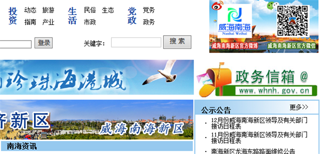 (八)做好威海南海新區(qū)網(wǎng)建設。威海南海新區(qū)網(wǎng)承擔了威海南海新區(qū)管委政府信息發(fā)布、新聞咨詢、招商引資、旅游推介等功能。通過不同欄目的設置,最大程度上服務民眾,服務區(qū)域發(fā)展。為了落實政府信息公開工作的要求,在原有網(wǎng)站欄目的基礎上開通了“政務信箱”專欄,及時收集群眾對于政府信息公開的需求,做好回復解答工作,同時做好政策宣傳和輿論引導,接受公眾意見和建議。