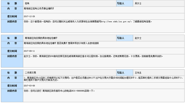 3、電話咨詢。為讓群眾更直觀的了解威海南海新區(qū)事務,設立咨詢服務電話,讓群眾直接問有所答。