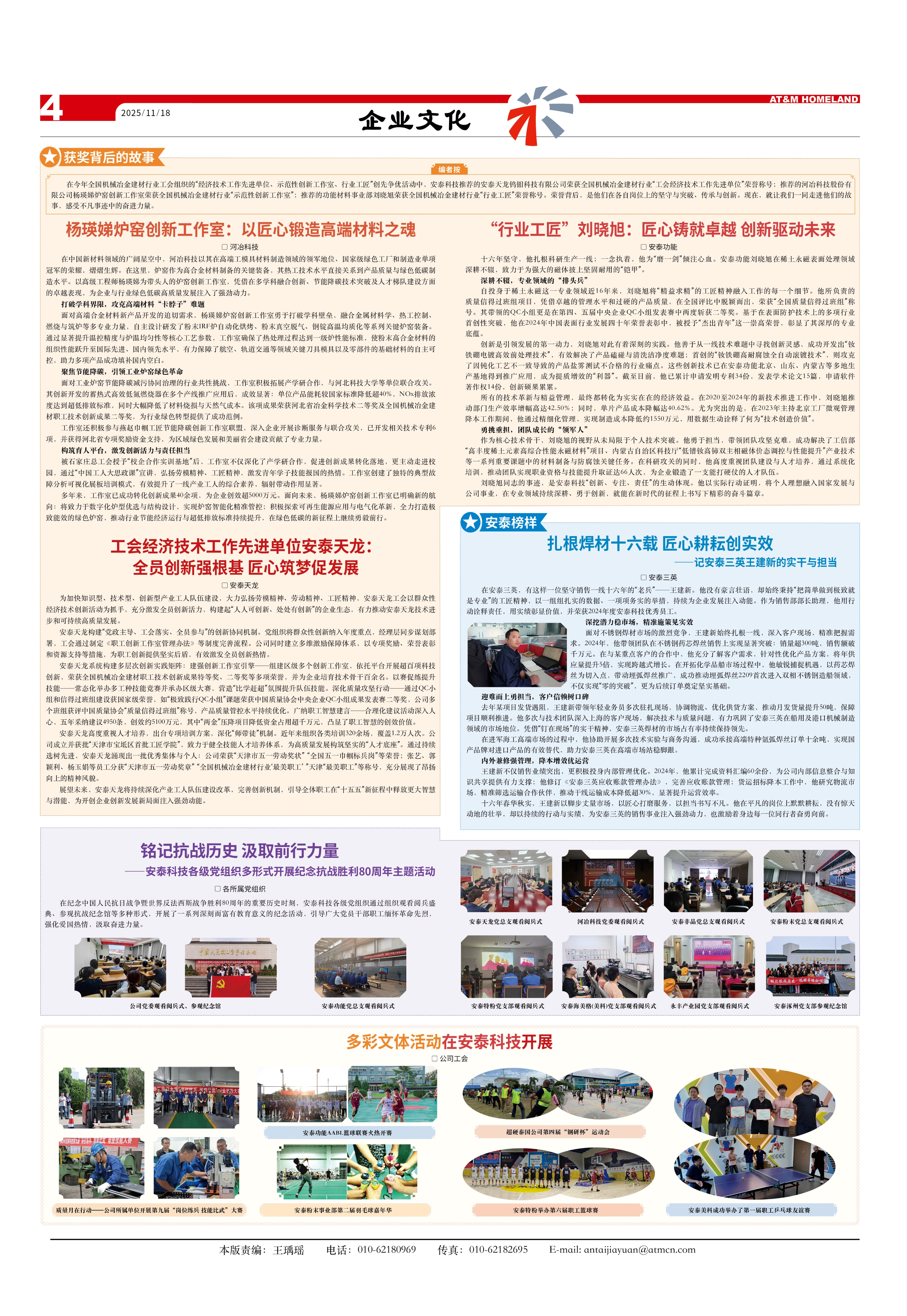 在今年全國(guó)機(jī)械冶金建材行業(yè)工會(huì)組織的“經(jīng)濟(jì)技術(shù)工作先進(jìn)單位、示范性創(chuàng)新工作室、行業(yè)工匠”創(chuàng)先爭(zhēng)優(yōu)活動(dòng)中,安泰科技推薦的安泰天龍鎢鉬科技有限公司榮獲全國(guó)機(jī)械冶金建材行業(yè)“工會(huì)經(jīng)濟(jì)技術(shù)工作先進(jìn)單位”榮譽(yù)稱號(hào);推薦的河冶科技股份有限公司楊瑛娣爐窯創(chuàng)新工作室榮獲全國(guó)機(jī)械冶金建材行業(yè)“示范性創(chuàng)新工作室”;推薦的功能材料事業(yè)部劉曉旭榮獲全國(guó)機(jī)械冶金建材行業(yè)“行業(yè)工匠”榮譽(yù)稱號(hào)。榮譽(yù)背后,是他們?cè)诟髯詬徫簧系膱?jiān)守與突破、傳承與創(chuàng)新?,F(xiàn)在,就讓我們一同走進(jìn)他們的故事,感受不凡事跡中的奮進(jìn)力量。
