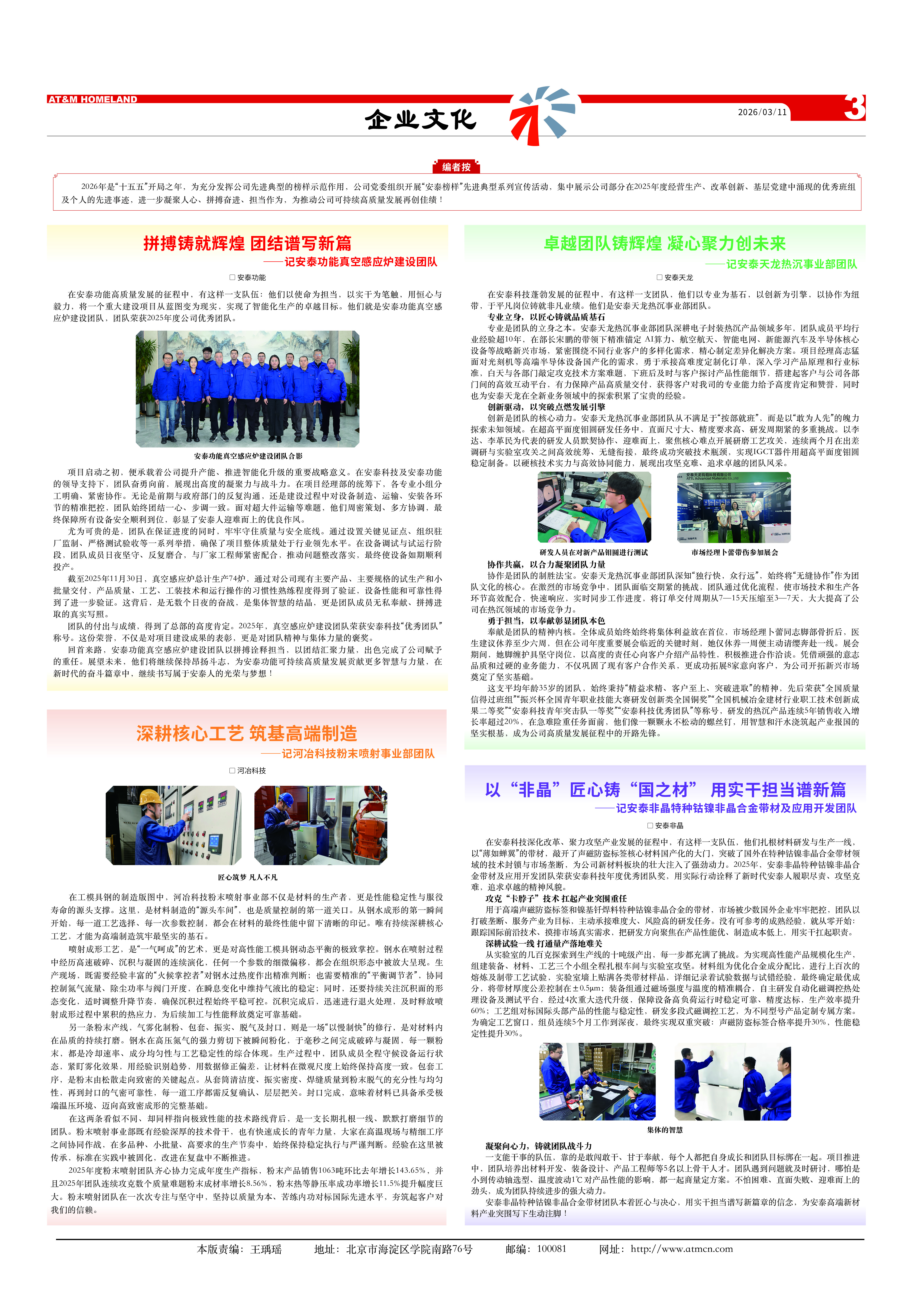 2026年是“十五五”開(kāi)局之年,為充分發(fā)揮公司先進(jìn)典型的榜樣示范作用,公司黨委組織開(kāi)展“安泰榜樣”先進(jìn)典型系列宣傳活動(dòng),集中展示公司部分在2025年度經(jīng)營(yíng)生產(chǎn)、改革創(chuàng)新、基層黨建中涌現(xiàn)的優(yōu)秀班組及個(gè)人的先進(jìn)事跡,進(jìn)一步凝聚人心、拼搏奮進(jìn)、擔(dān)當(dāng)作為,為推動(dòng)公司可持續(xù)高質(zhì)量發(fā)展再創(chuàng)佳績(jī)!